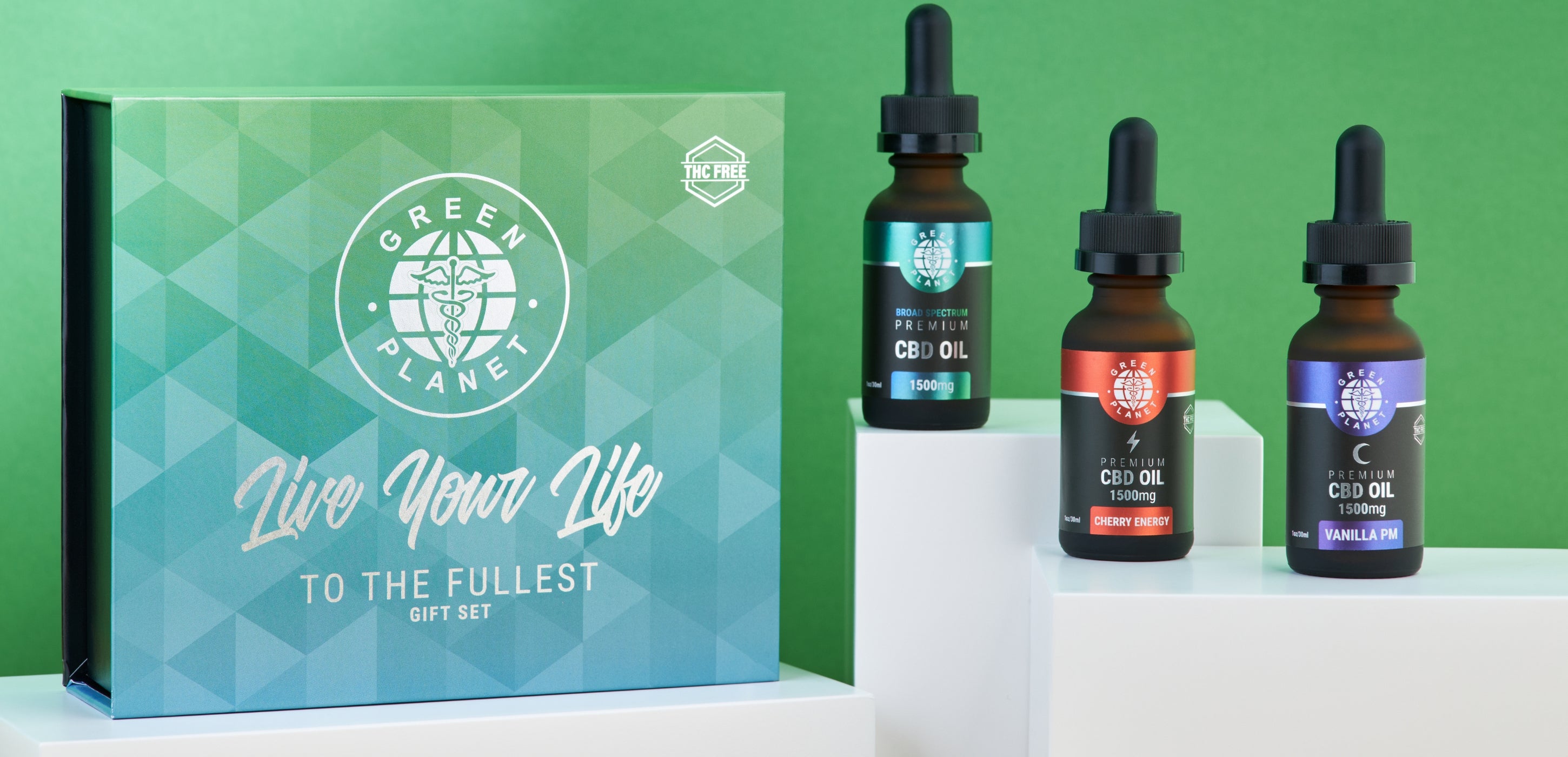 Green Planet’s "Live Your Life to the Fullest" set CBD tinctures distills the full therapeutic power of the hemp plant into a fast-acting, easy-to-dose oil.